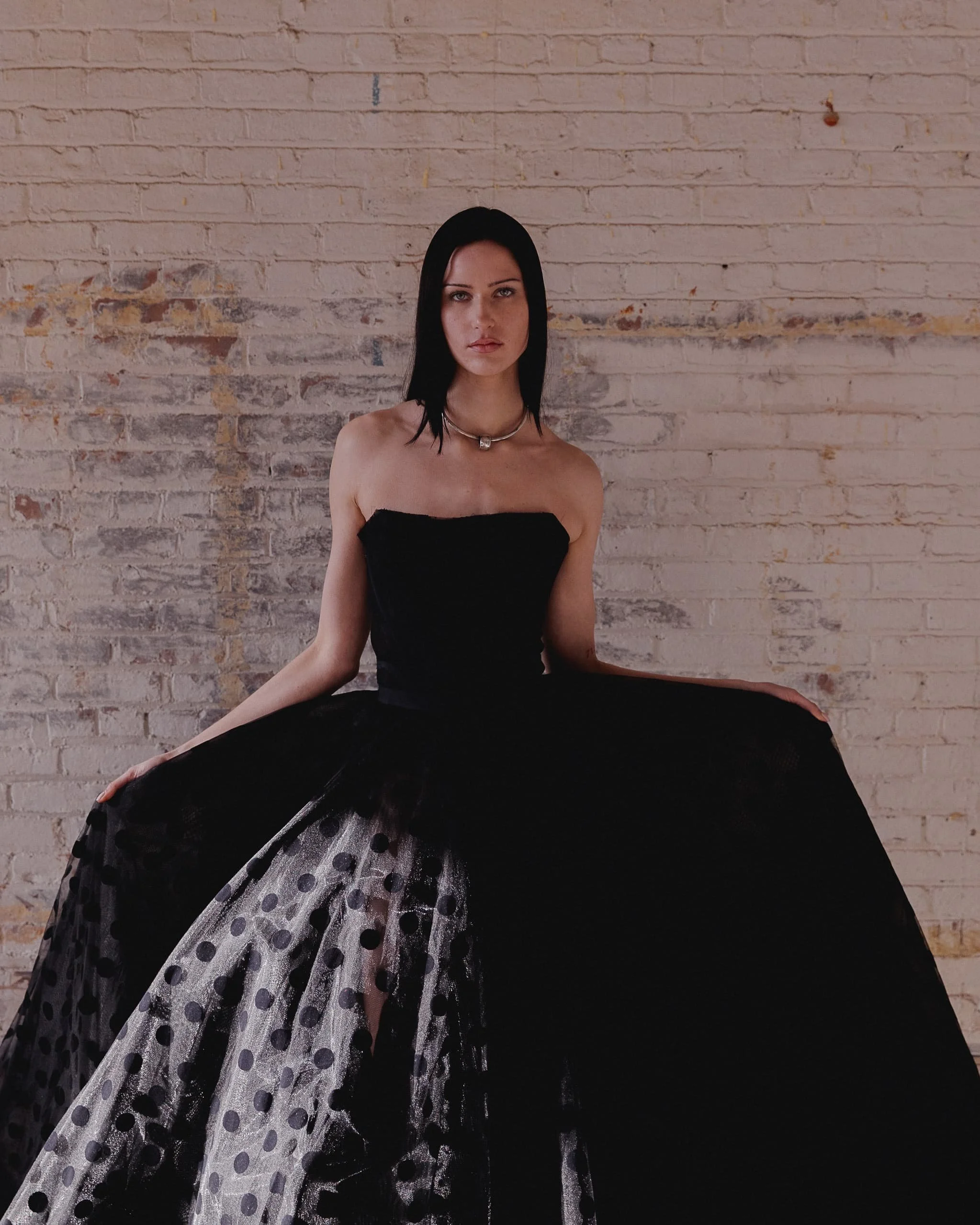 Thank you, fabric plays a central role in how I build a collection. I’m particularly interested in creating a dialogue between traditionally masculine and feminine material languages. I often combine classic menswear suiting fabrics with evening materials such as satin, tulle, or sheer textiles. Suiting carries a strong tailoring tradition and a sense of structure, while evening fabrics introduce fluidity, transparency, and movement. Bringing these materials together allows the garments to exist in a space where those identities can interact rather than remain separate.