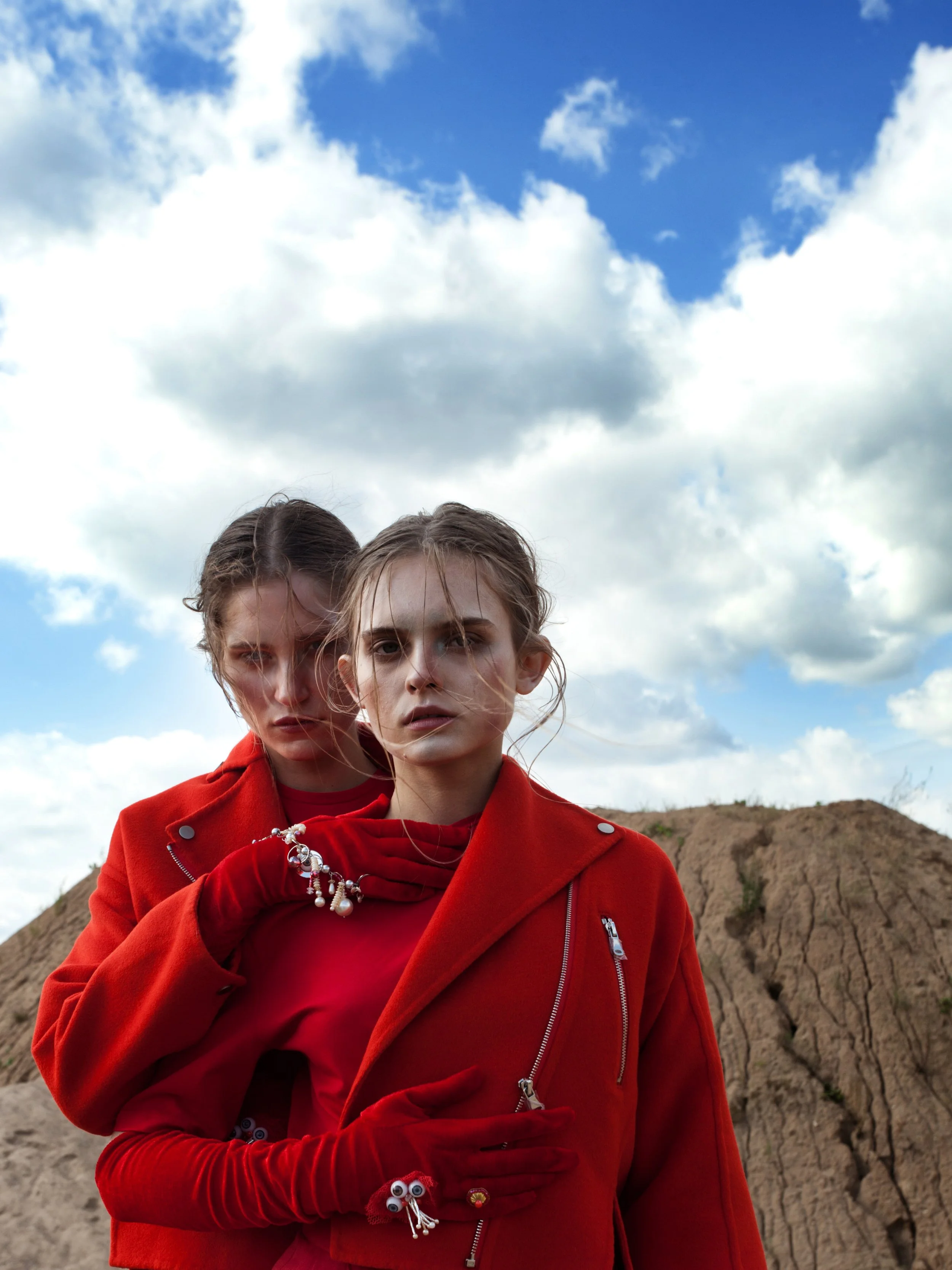 Hair and makeup support the fashion editorial by emphasising structure, skin texture, and clarity of expression. The approach remains minimal, allowing the models to act as expressive focal points rather than decorative surfaces. This simplicity ensures that gesture, colour, and atmosphere carry the emotional weight of each image.